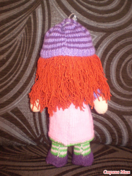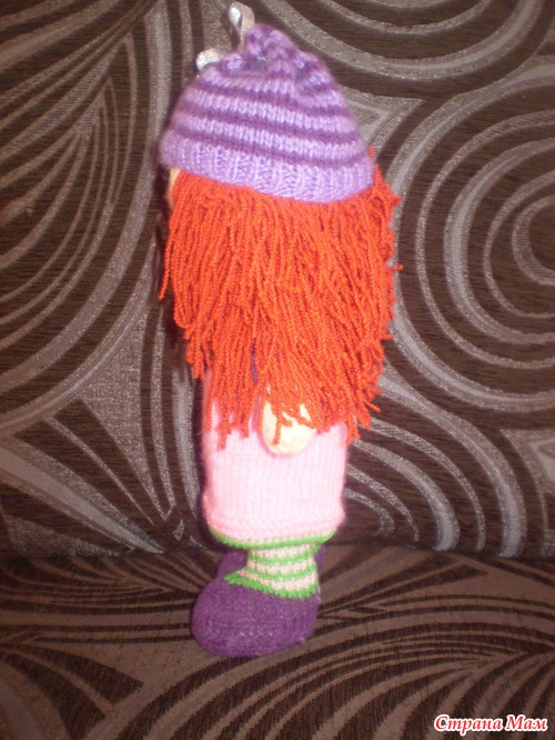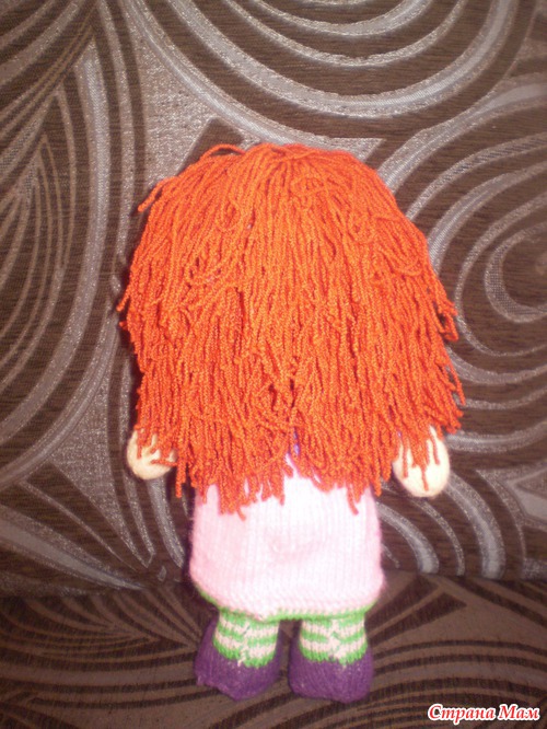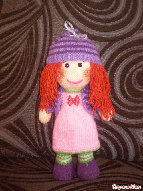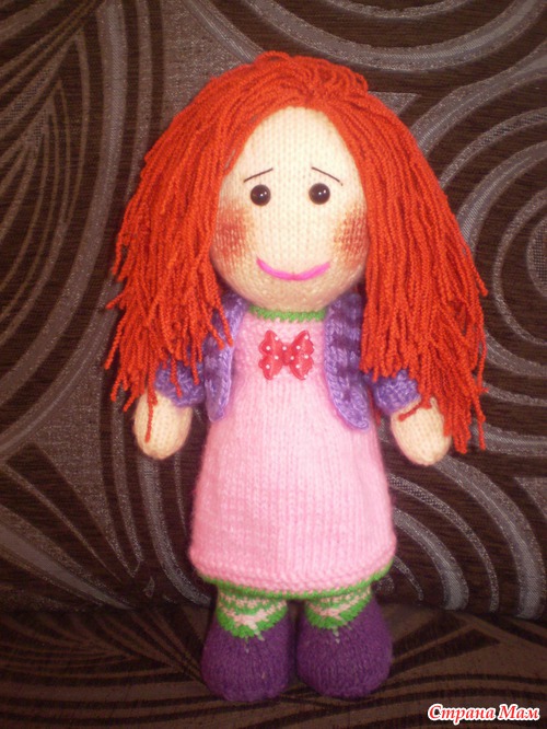 Какая прикольная рыжулька! Я тоже доче вязала куклу, у которой по описанию не было ротика, так она тоже постоянно показывала на место где должен быть ротик, пожимала плечиками и говорила "Нема!"(т.е. нету) Пришлось вышивать!