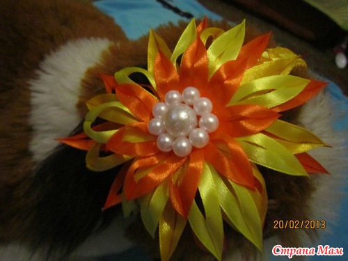 Ну вот и я решила впервые попробовать сделать канзаши... и вот, что у меня получилось