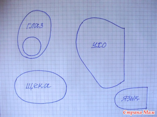 1.Голова-туловище — овал 34Х40 см (всего 4 детали)