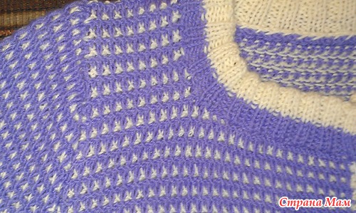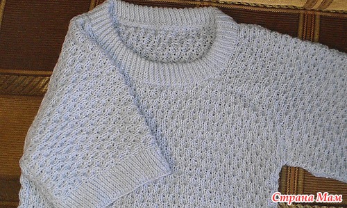 Небесно-голубой джемпер спицами