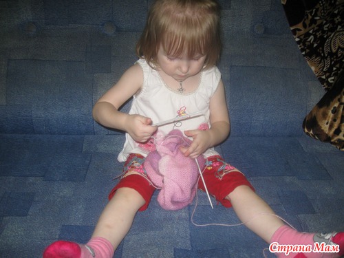 И мама молодец, что с таких лет приучает дочку к рукоделию!