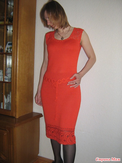 Мне тоже нравятся эти платья именно из-за того что можно носить без подклада. а то я себе связала одно ажурное, а носить не могу: подклад под него просто не помещается: уж очень впритык получилась вещь. Вот оно: