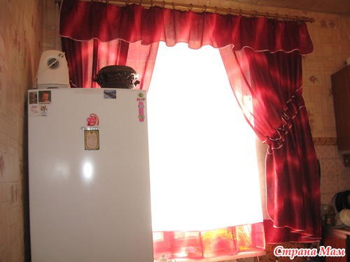 Ну вот и дошли до кухни, шторы "Кошкин дом", тоже малость огорчилась, так как здесь вместо прихвата делается сборка, а окно надо каждый вечер закрывать и распускать-собирать её бесконечно не получится
