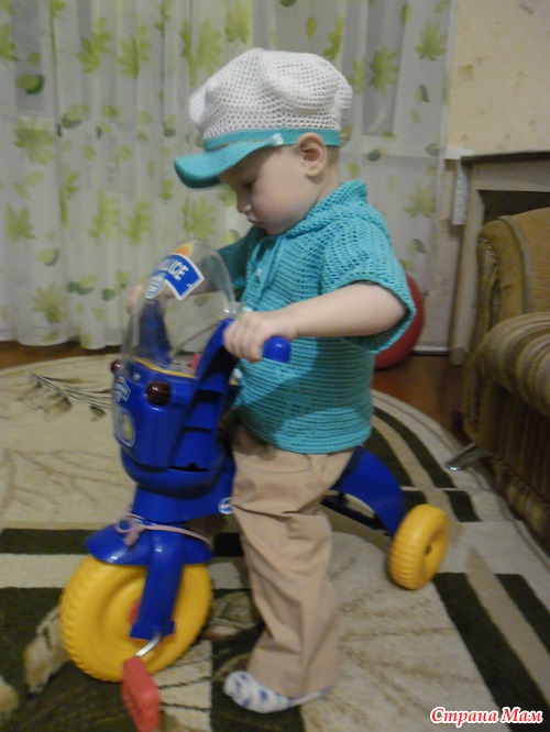 майка пряжи Сосо 50/240 крючок 2,5, ушло 2 мотка, на возраст 2 года