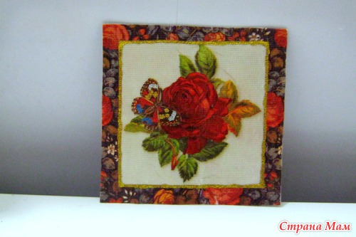 Дальше картинка по необходимости вырезается и наклеивается на картон. Декорируется по-желанию. Роза у меня декорирована разноцветными глиттерами, нарциссы - просто лента по-контуру. С обратной стороны пишем поздравление-пожелание. Открытка готова.Размер открыток: роза 16х16 см, нарцисс 16,5х16,5 см.