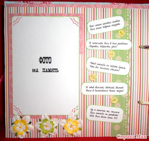 Заказали мне неделю назад фотоальбом для двух юбиляров. В общем задумка такая: У мужа 1 марта день рождения - 45 лет, а у жены - 2 марта, и тоже 45. Альбом будет подарком, и в него в последствии будут вложены фото с самого празднования юбилея. Хотелось, чтобы были какие-то красивые надписи на память о празднике. Но с надписями о юбилее у меня получился какой-то ступор...