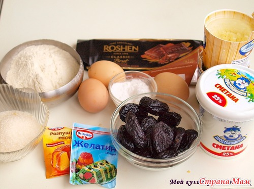 Желатин замочить в 40 мл молока. Чернослив положить в миску, залить 125 мл теплой воды. Затем чернослив достать (настой не выливать) и нарезать небольшими кусочками. Настой процедить, влить в желатин и нагреть на водяной бане до полного растворения желатина.