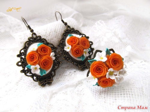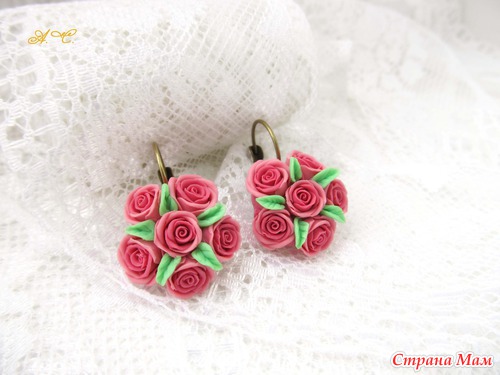 Серьги "Букетики роз"
