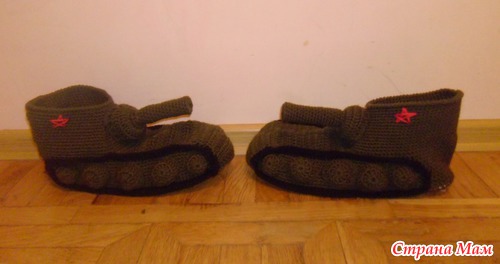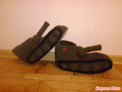 Вот такие тапки танки попросила связать подружка для своего брата)):