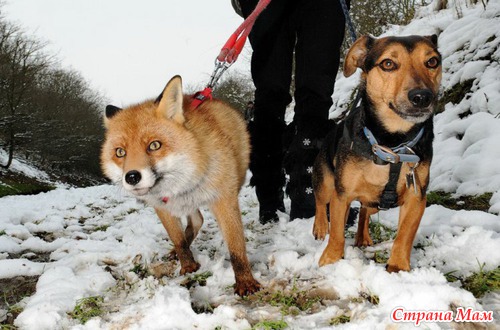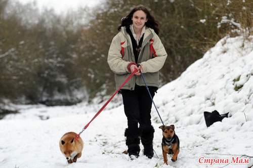 Лисицу нашли сотрудники заповедника в Уорикшире, она была ранена. Ее выходили, но назад отпустить не смогли, животное уже слишком привыкло к людям. Самое интересное, что как только ее забрали из ветлечебницы, лисица начала вести себя, как собака. Она ест сырое мясо, спит в корзине и гуляет на поводке).