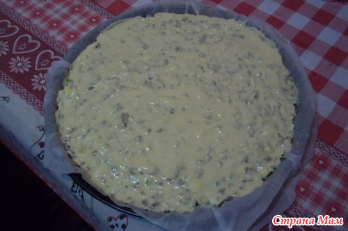 Выливаем оставшееся тесто и все разравниваем ложкой