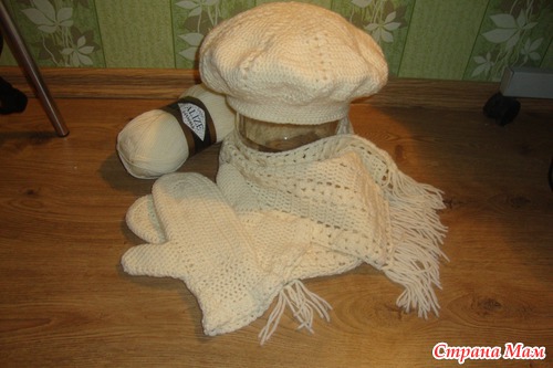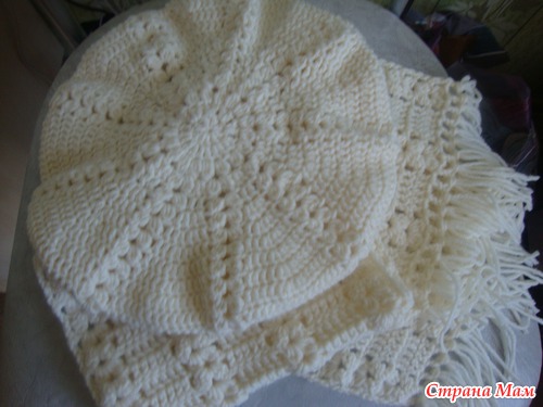 Хотя, в данном случае " на заказ" звучит условно. Соседке и доброй приятельнице связала комплект по ее заказу на бескорыстных началах. Вяжу много лет, а вот на заказ все время побаиваюсь. Теперь предстоит 3 года декретного отпуска, вот и подумываю на заказ начать вязать, потому как в последние несколько месяцев благодаря нашему любимому сайту СМ увлеклась вязанием не по-детски, ни дня без спицы и крючка!!!