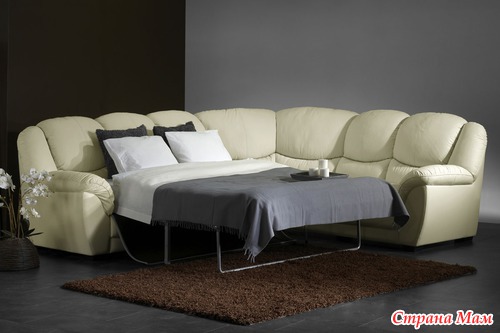 а если в гостинную что бы с гостями трындеть и что бы было где этих гостей уложить в случае если метро ходить перестало)))) то ябы брала большой угловой, который раскладывается путем отодвигания сидения и укладывания спинки. НО