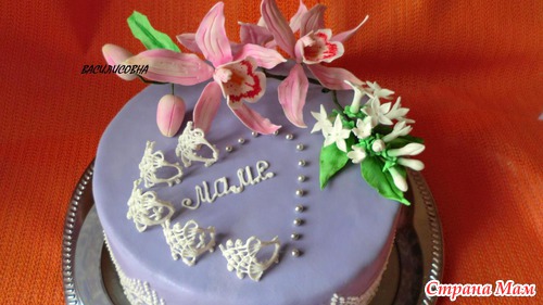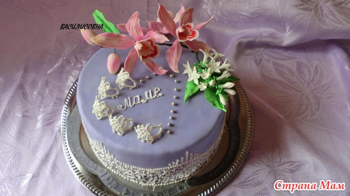 ... под мастикой "полуганаш", покрытие мастика ММ, кружева из гум пасты, айсинг