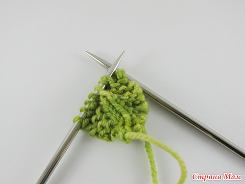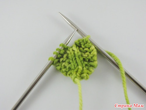 вязать 3 стежка с левой иглы правой иглы, поверните работу.