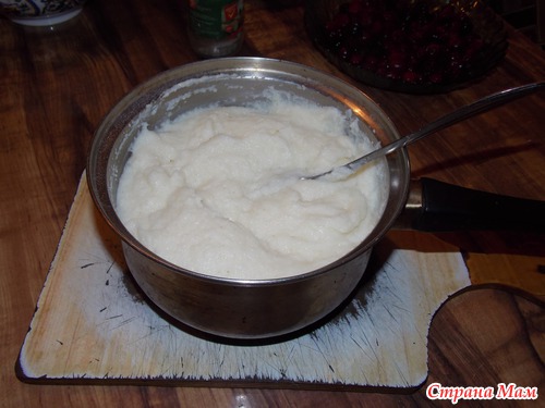 1. Сварить манную кашу из литра молока, манки, сахара и соли по вкусу. Остудить.