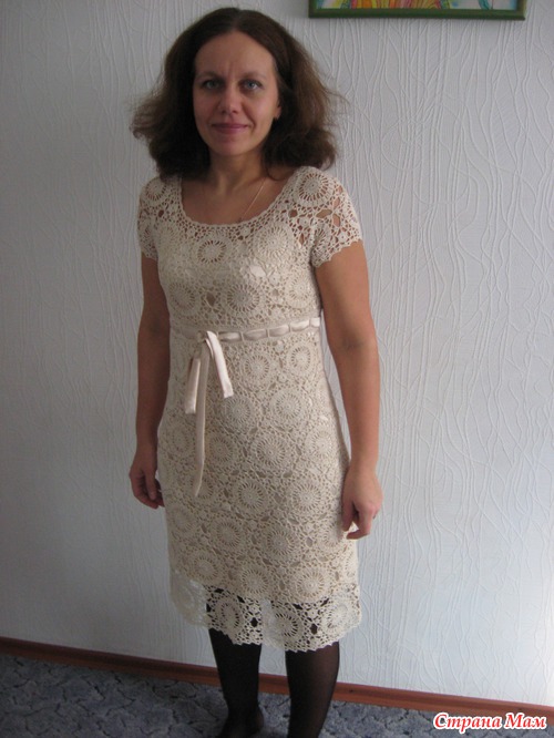 Ушло на платье 400гр мерсезированного хлопка, схемки нашла в контакте и на осинке вяжут, связала себе на день рождения