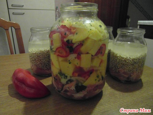 -что бы целую духовку ради одного ужина не включать, по ходу несколько банок Домашней тушенки приготовила...