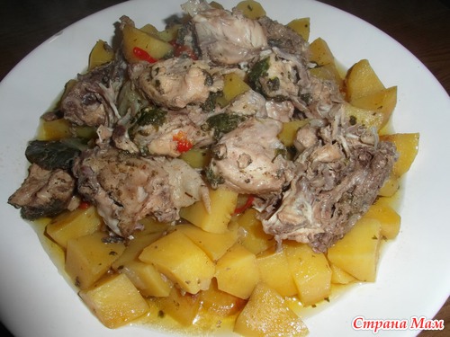 мясо уже было подготовлено...начистила немного картофеля...и в духовку...блюдо готовится, а я с гостями сидела...