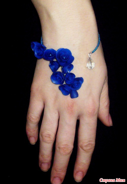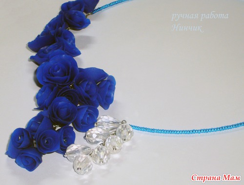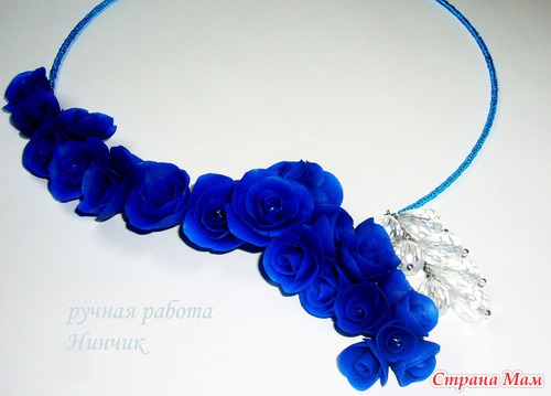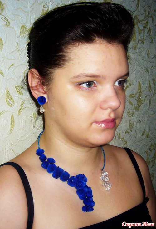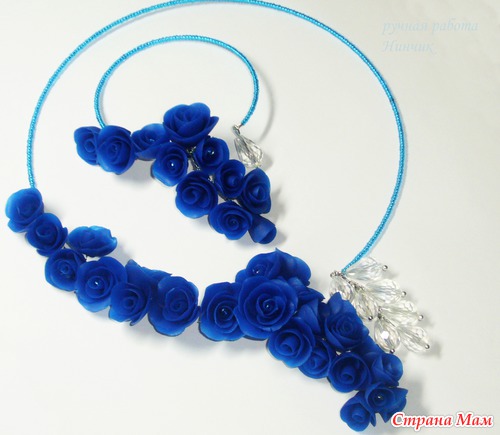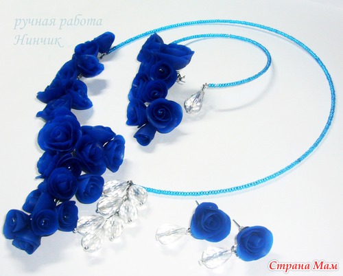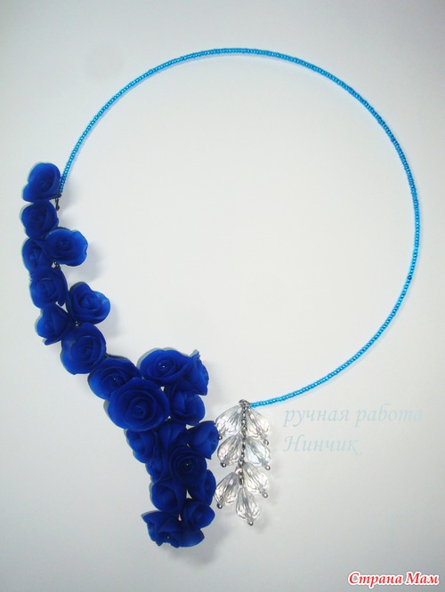 Симпатично! Нравится монохромность... можно смело сочетать с нарядами в белых-серых тонах... ультрамарин очень сложный цвет сам по себе, так как одновременно яркий и приглушенный, поэтому решение сделать комплект в одном цвете - оптимальное. Я бы наверное еще добавила "хрусталя" среди розочек... меленьких таких камушков... но это чисто мое предпочтение (люблю камушки, ничего с собой поделать не могу). Вообще, молодец!