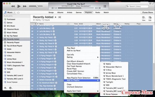 Затем я нахожу в разделе Recently Added (недавно добавленные) необходимые мне песни, и добавляю их в плейлист