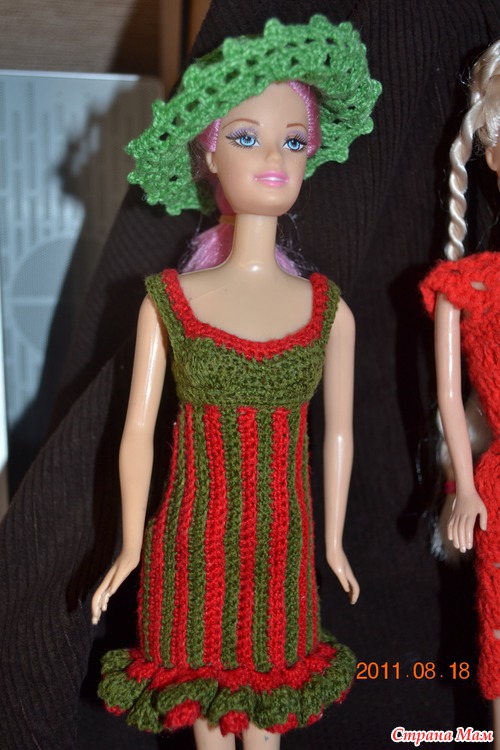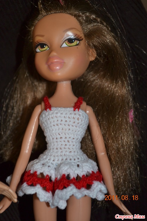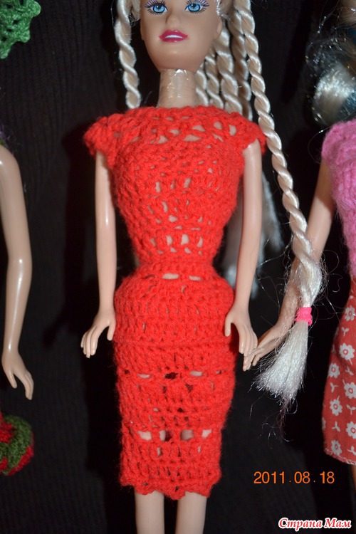 начиналось вот с этого - Барби в красном, вязалось крючком и чистая импровизация с бесконечными примерками