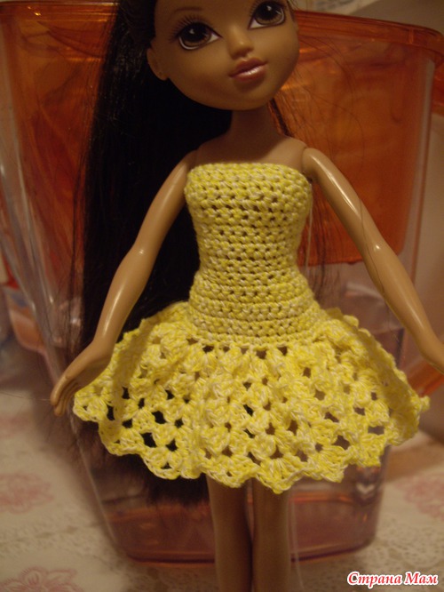 вяжу сейчас пышное бальное платье для Барби крючком и вот сумневаюсь что осилю