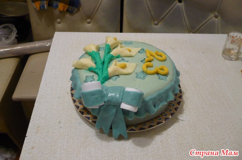 4 - Сделала мастику молочную и обтянула торт. Раскатывала между пленок.