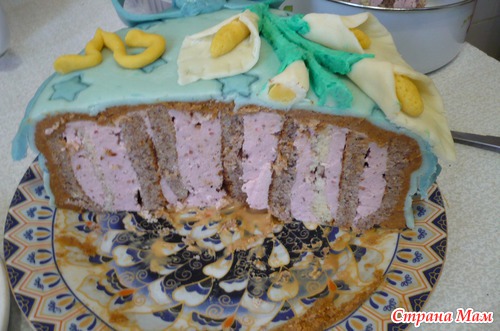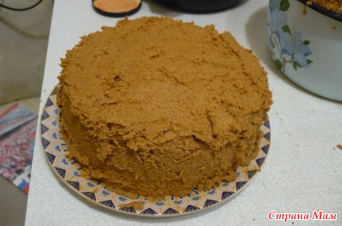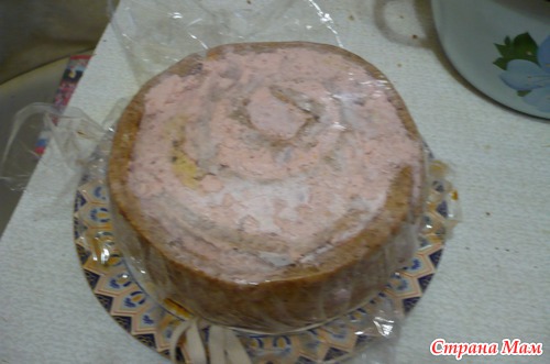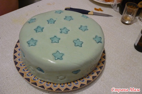 4 - Сделала мастику молочную и обтянула торт. Раскатывала между пленок.