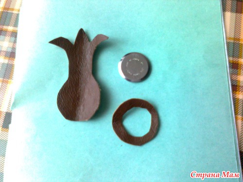 Кожзаменитель (от старой сумки) и металлическая деталь (корпус от часов).