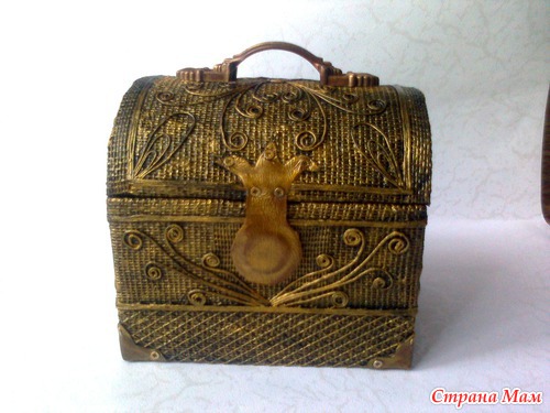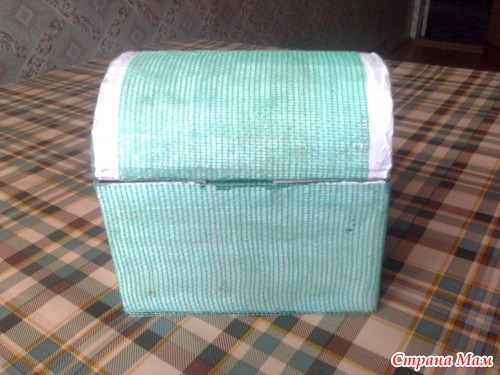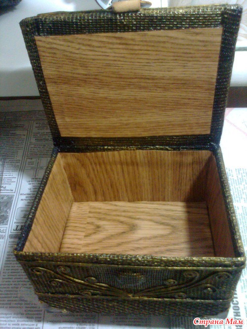Коробочка размером (15*11*9)см станет сундучком с размерами (16*12*14) см.