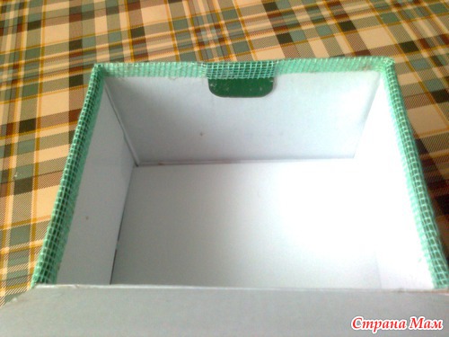 Дно коробки проклеила картоном. Фатин тоже завернула и приклеила.