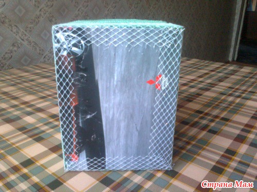 Вид сзади. Надо приклеить сетку таким образом, чтобы перекрыть стык крышки с коробкой. Тогда будет гарантия, что крышка не оторвётся.