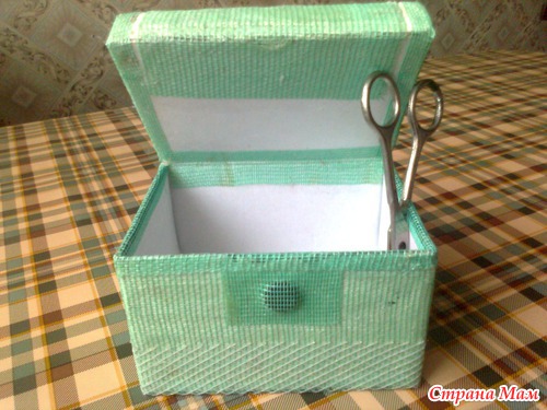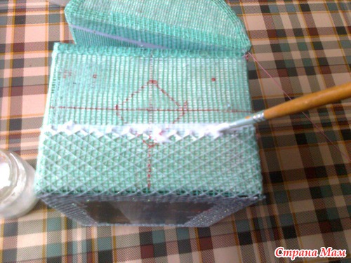 Для надёжности сетку наклеила и на внутренний стык крышки с коробкой. В качестве замочка приклеила магнитик.