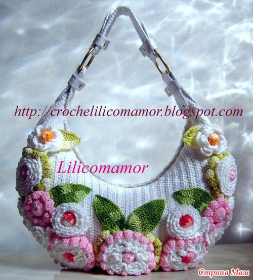Наши вязали я видела,но у кого не помню,я тогда не умела компом пользоваться,а вязали умеющие и несколько цветов...надо поклянчить у них ,но как это сделать? может мадераторы помогут? желающих много,да и лето на носике...А сумка мне очень понравилась!!!