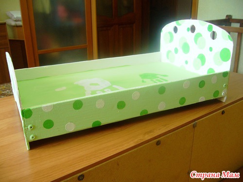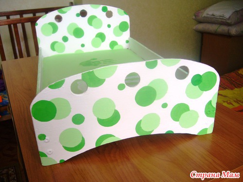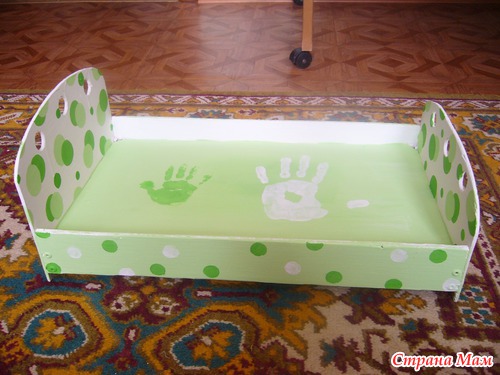 Еще в начале учебного года попросила я нашего преподавателя труда за небольшую мзду в виде банки кофе сделать для дочи кроватку для кукол. Потом это как-то забылось, и вот неделю назад он мне вручает эту кроватку. Кроватка ничего, но, естественно, требует доработки - раскрашивания.
