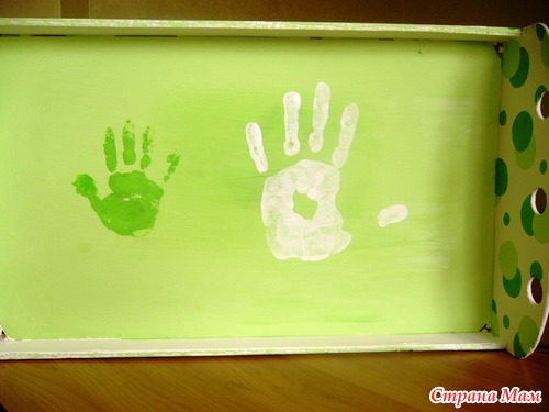 И вот меня вдруг осенило, что заморачиваться с трафаретами и сложными узорами не стоит, т. к. во-первых, не дадут некоторые мамины помощники, во-вторых, колер только зеленый. А сделаю-ка я горох!!! И СДЕЛАЛА!!!
