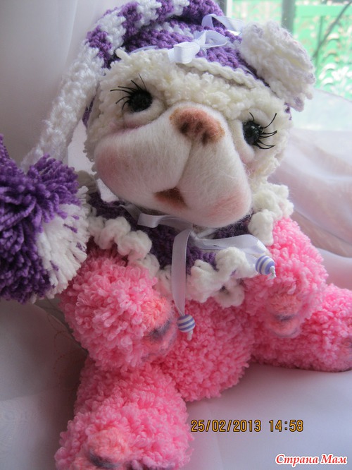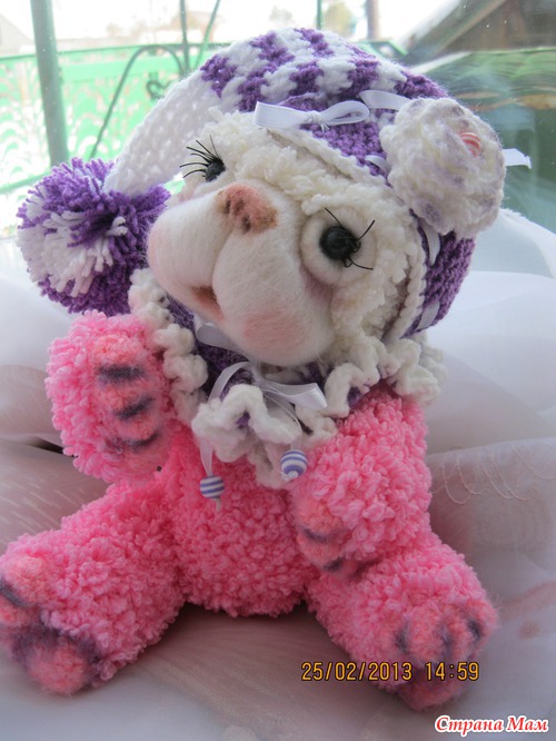 а то написала тут одной небольшое замечание, а она сразу грубить. в общем мне кажется цвета немного не подходят друг к другу, розовый слишком ярки что ли.. и глазки слишком на выкате.. а так работа аккуратная! не обижайтесь на меня