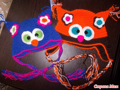 Вот решила Вам показать, что у меня получилось!!! Одна шапочка на 4 мес, другая на 2 годика