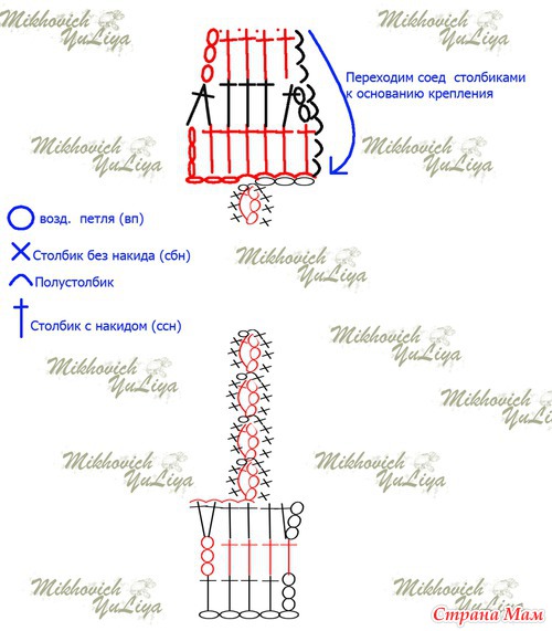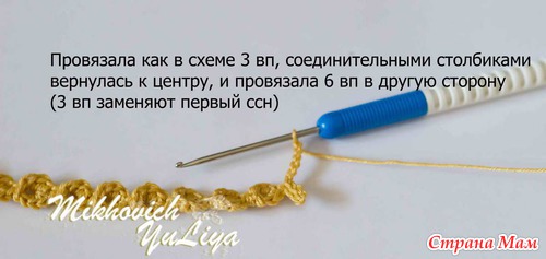 Связала по схеме три ряда ссн. Соед. столбиком перешла к центру.