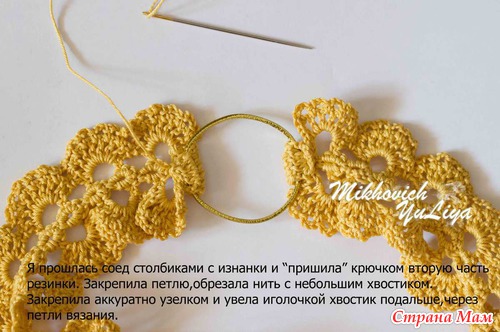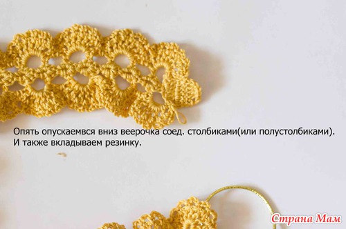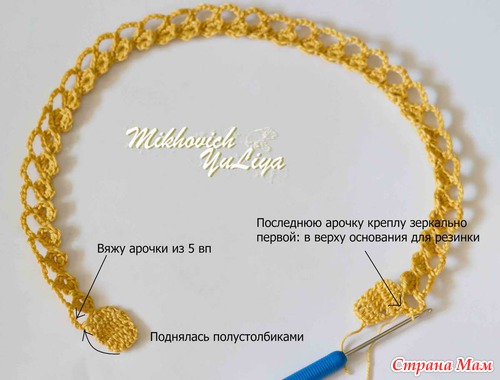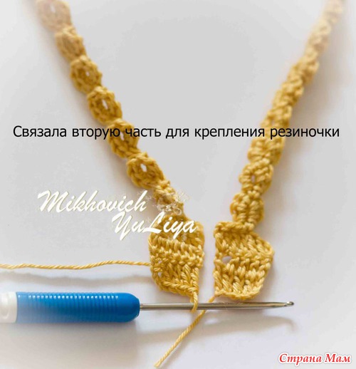 Довязала до нужной длины, далее по схеме вяжу вторую часть для крепления резинки