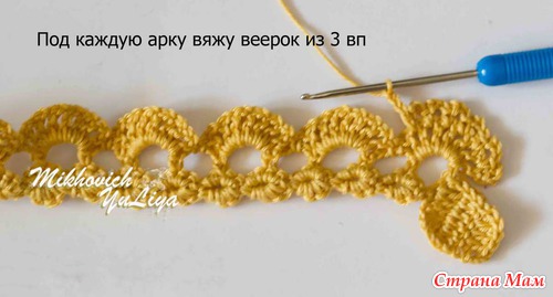 Вяжу арочки из 3 вп, креплю в вп между ссн веерочков