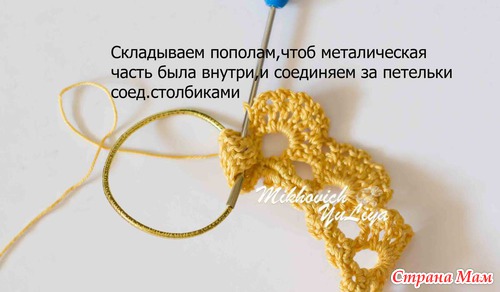 поворачиваю вязание против часовой стрелки, и вяжу 4 сбн на второй стороне колечка, Соединяю с началом вязания соед. столбиком.