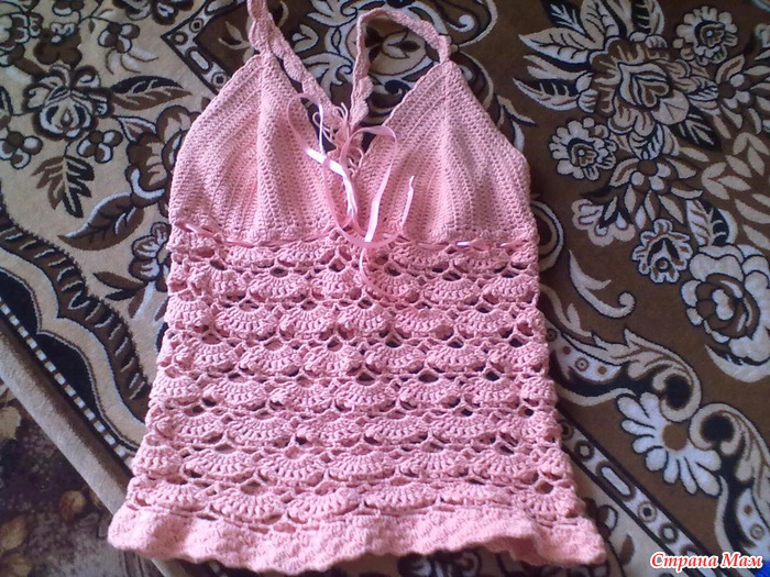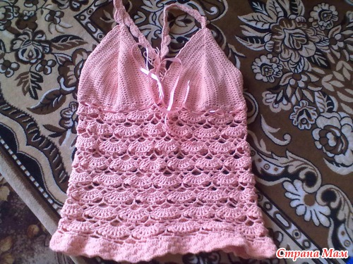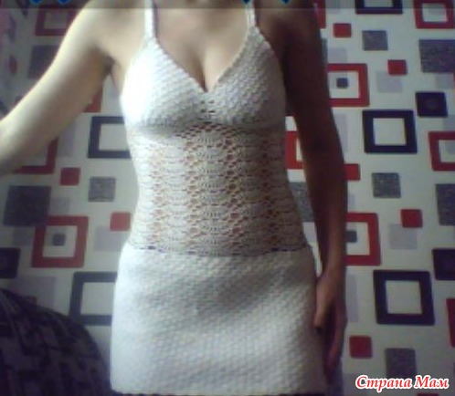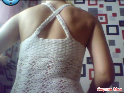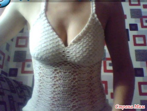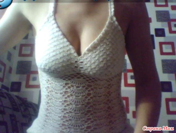 Всем-всем привет! Меня зовут Марина.Я здесь новичок,хотя зарегистрировалась в СМ уже давно...Если не возражаете,то я к вам присоединяюсь,тоже начала вязать эту модельку,но не себе (уже возраст не позволяет такое секси носить!),а стройной девушке,очень надеюсь,что моей будущей невестке!Вот что у меня на сегодняшний день:
