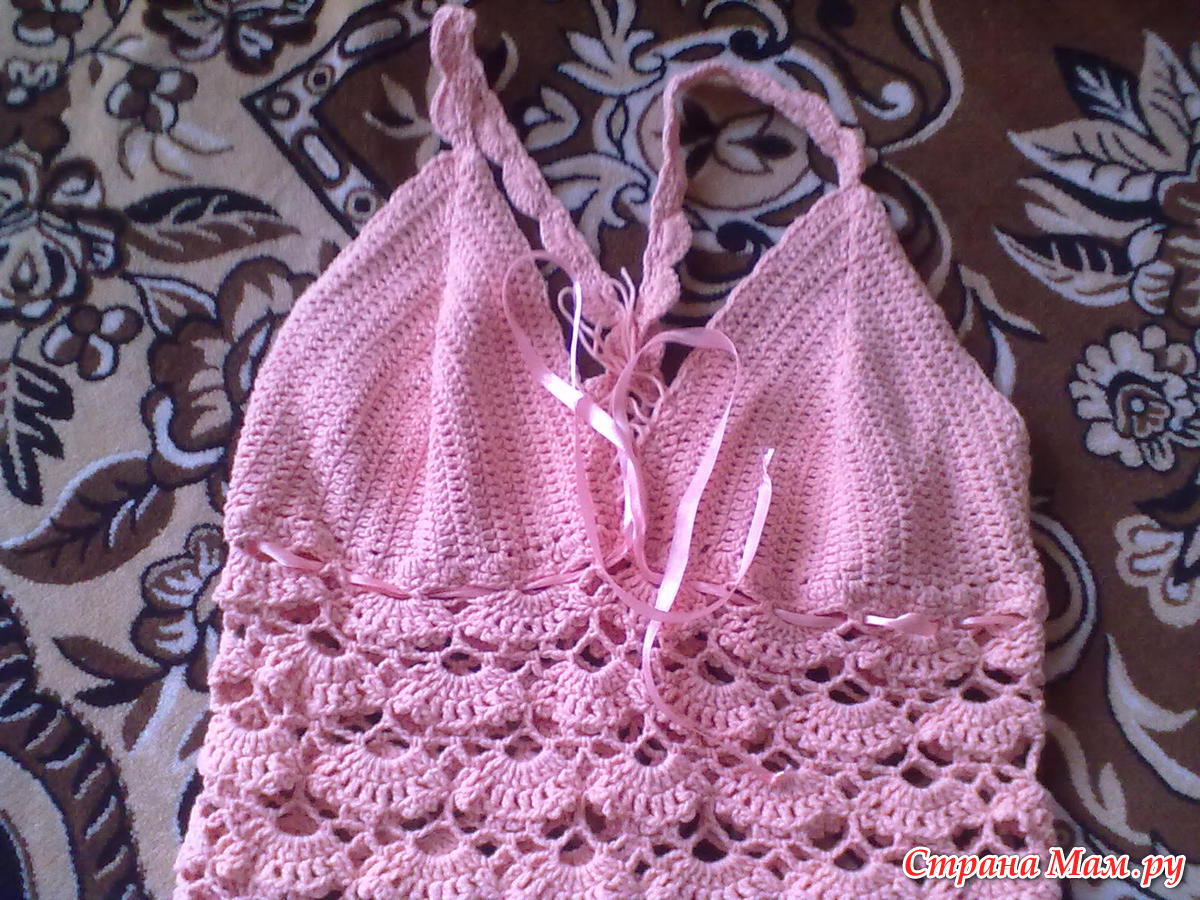 я лиф вязала столбиками с 2 накидами. Ряды повторяла до 16-го ряда, потом начала убавления как на схеме. Прикладывала к бюстгалтеру чтобы максимально совпадал по размеру. Перевязывала всего 2 раза