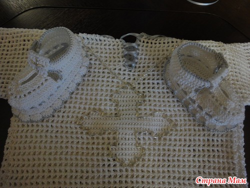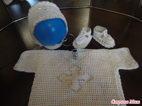 Связался в подарок, по просьбе одной знакомой вот такой крестильный комплект для чудесного мальчика, на весну.