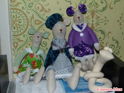Сшились у меня вот такие Тильды: Мишка и 2 Мышки (зеленая и фиолетовая). Мышки улетели в Нидерланды и счастливо поживают со своими хозяйками. А Мишка тоже скоро поедет в Казахстан к своей маленькой хозяйке!