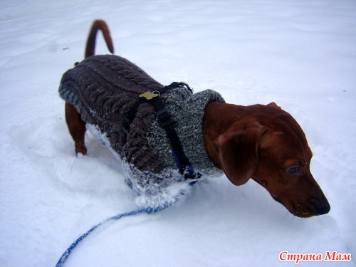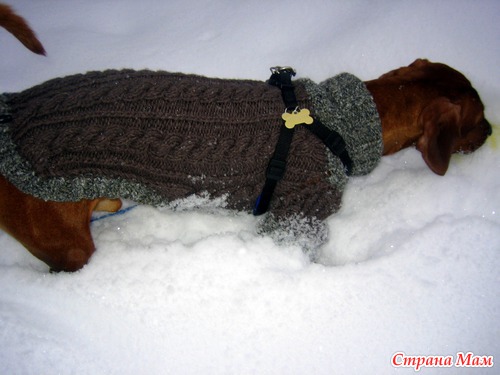 Хочу хвастик показать, это для таксочки связала, пробный, на глаз, без примера, сказали что как влитой и очень удобный, я рада, а ещё связала для Джек Расела породы, но не сфоткала, ушла посылка в Германи..