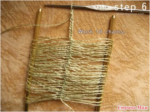 Затем набираем 8 воздушных петель и провязываем первые 2 длинные петли.