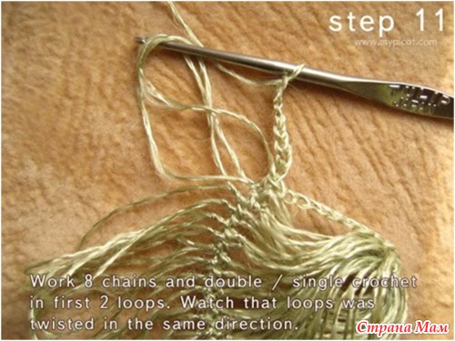 И так до конца. Потом следует цепочка из 8 воздушных петель, полустолбик у основания.
